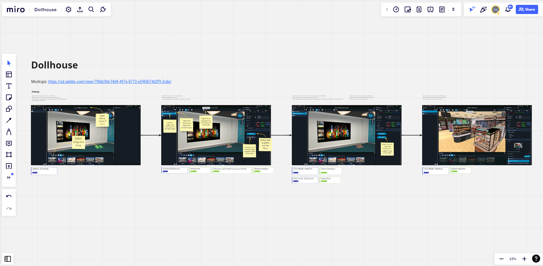 You have to know your audience when it comes to storytelling, meaning all artifacts may not translate to understanding to the group. So not only did I use Miro to document my exploration and discovery but I also used it to annotate mockups and explain user interactions.